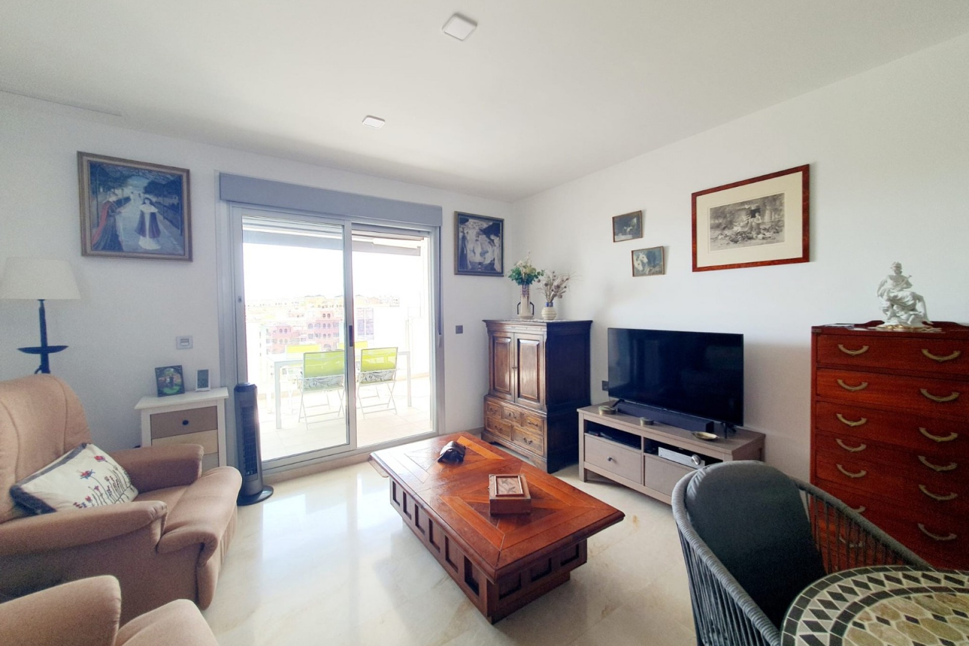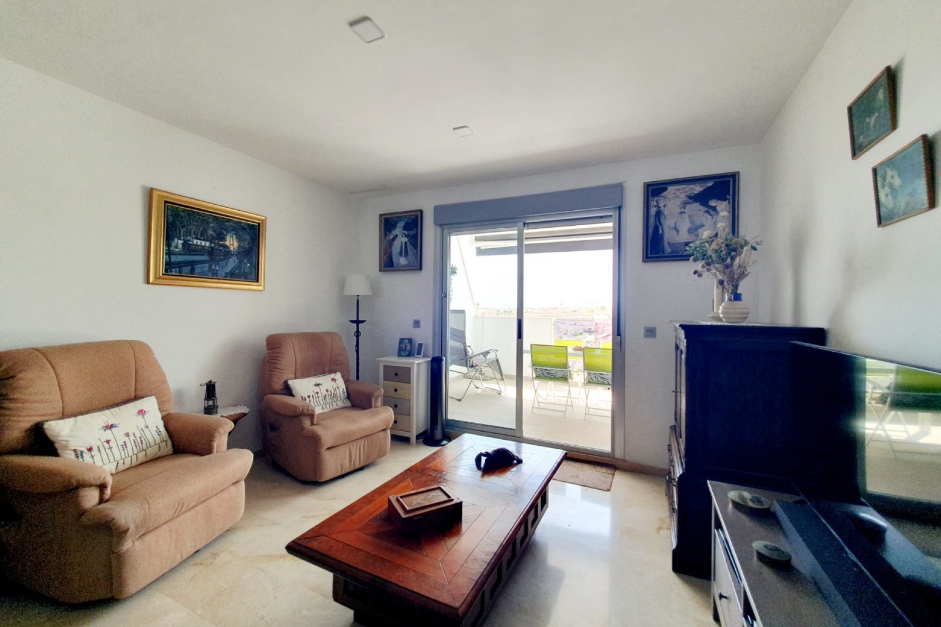 ¿Busca un piso de 3 dormitorios en Orihuela Costa? ¡Tenemos justo lo que necesita! Situado en Villamartín-Las Filipinas, tenemos el placer de presentarle este psio en segunda planta con ascensor. La propiedad consta de 3 dormitorios, 2 baños y 2 terrazas. Una de ellas tiene una superficie de 14 m² y está orientada al sur, lo que le permite disfrutar del sol durante todo el día y, sobre todo, durante todo el año. Y si se fija bien, ¡incluso tiene vistas al mar! Piso luminoso con aire acondicionado centralizado, la propiedad se vende sin muebles. Sin embargo, la cocina equipada y sus propios electrodomésticos permanecerán en el piso. El precio de venta incluye la plaza de aparcamiento en el sótano con acceso por ascensor. Situado en una comunidad cerrada con piscina, jacuzzi, zona de juegos para niños y pista de petanca, el piso está a solo 10 minutos de las playas. ¿Desea obtener más información? ¡No dude en ponerse en contacto con nosotros para concertar una visita!