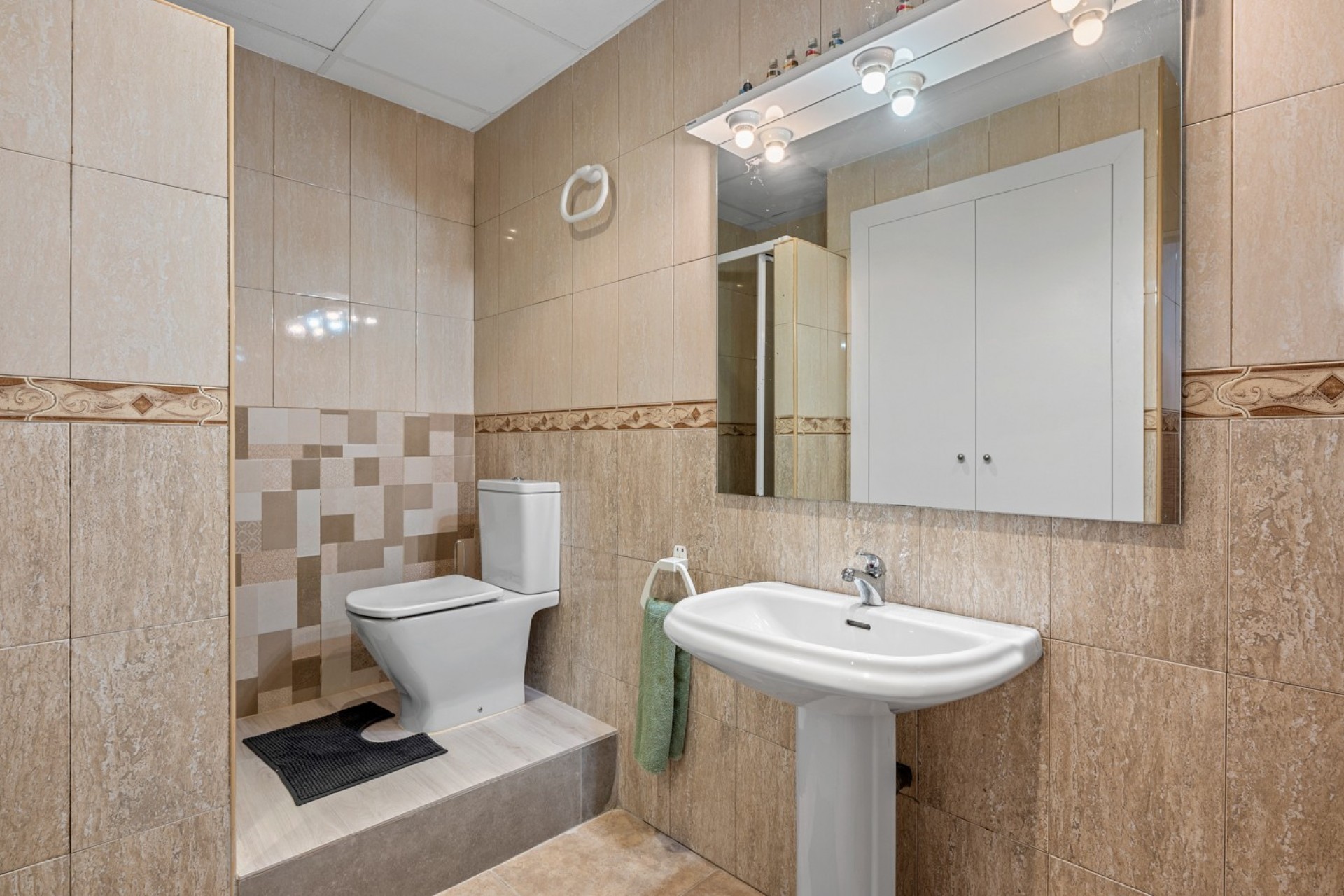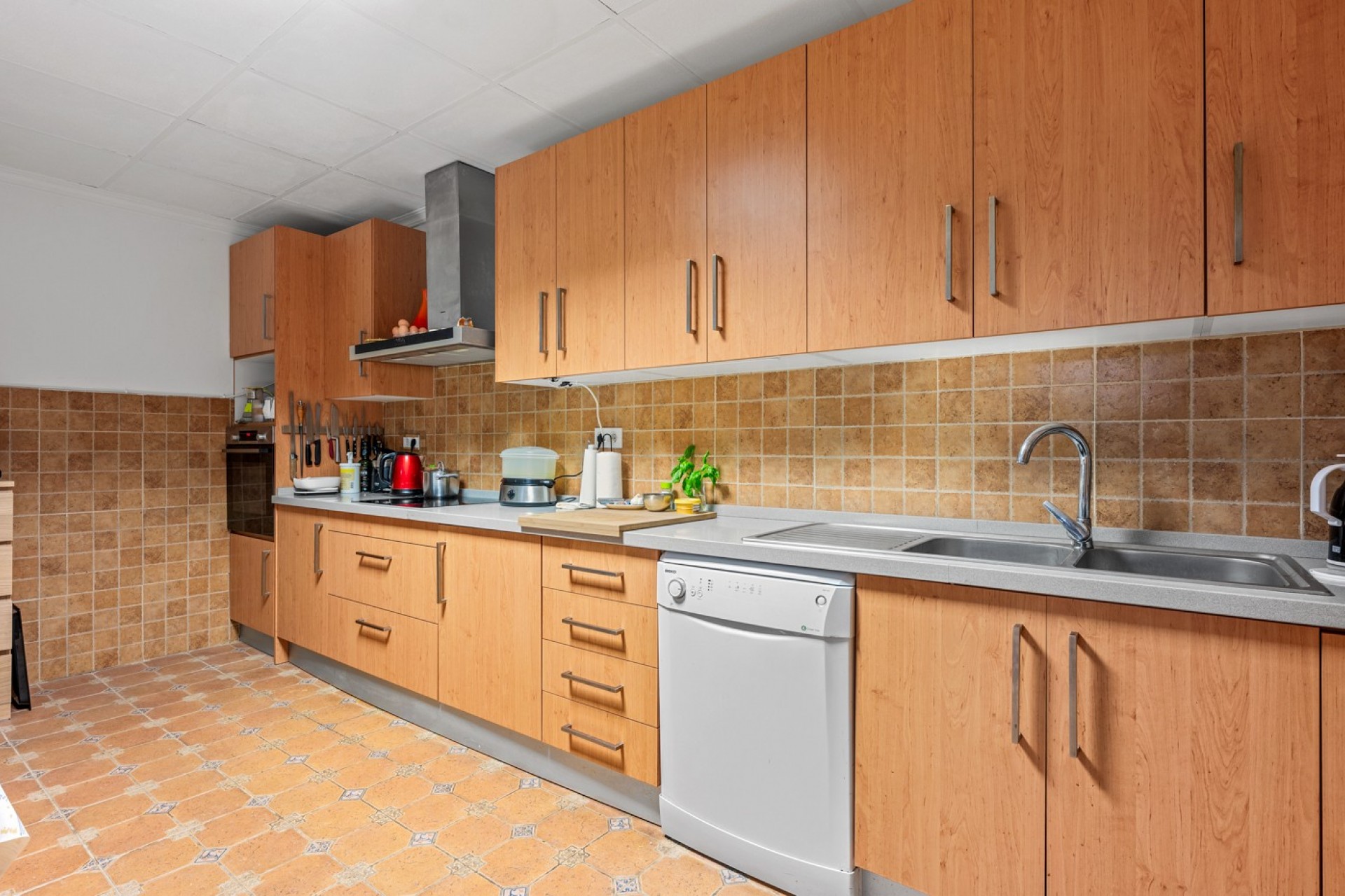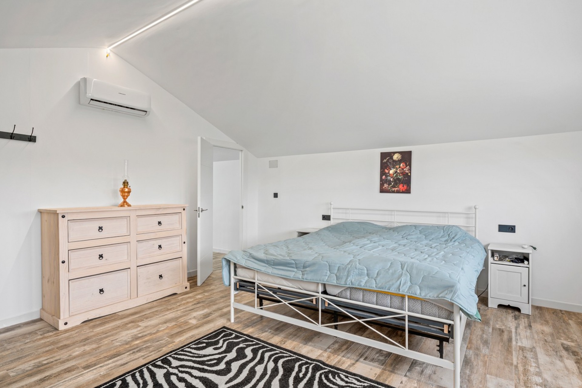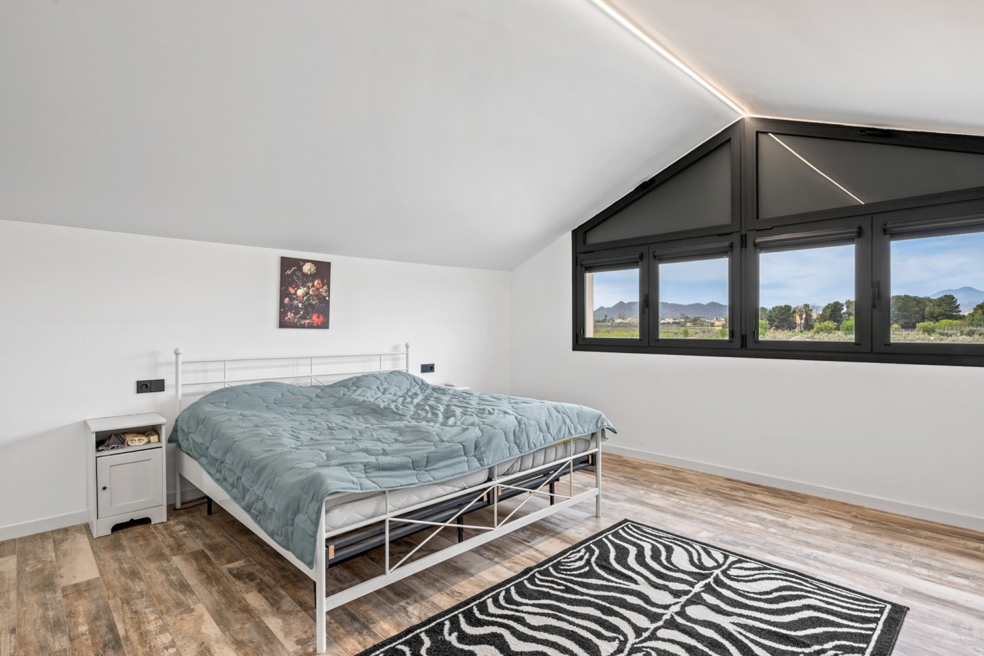 À l’extérieur, la villa continue de séduire avec un garage privé, un espace barbecue et une magnifique piscine de 12 x 4 mètres. Vous y trouverez également un salon fermé avec cuisine extérieure et douche, parfait pour profiter des soirées d’été. Le vaste terrain est agrémenté d’oliviers et d’arbres fruitiers, renforçant son charme méditerranéen.