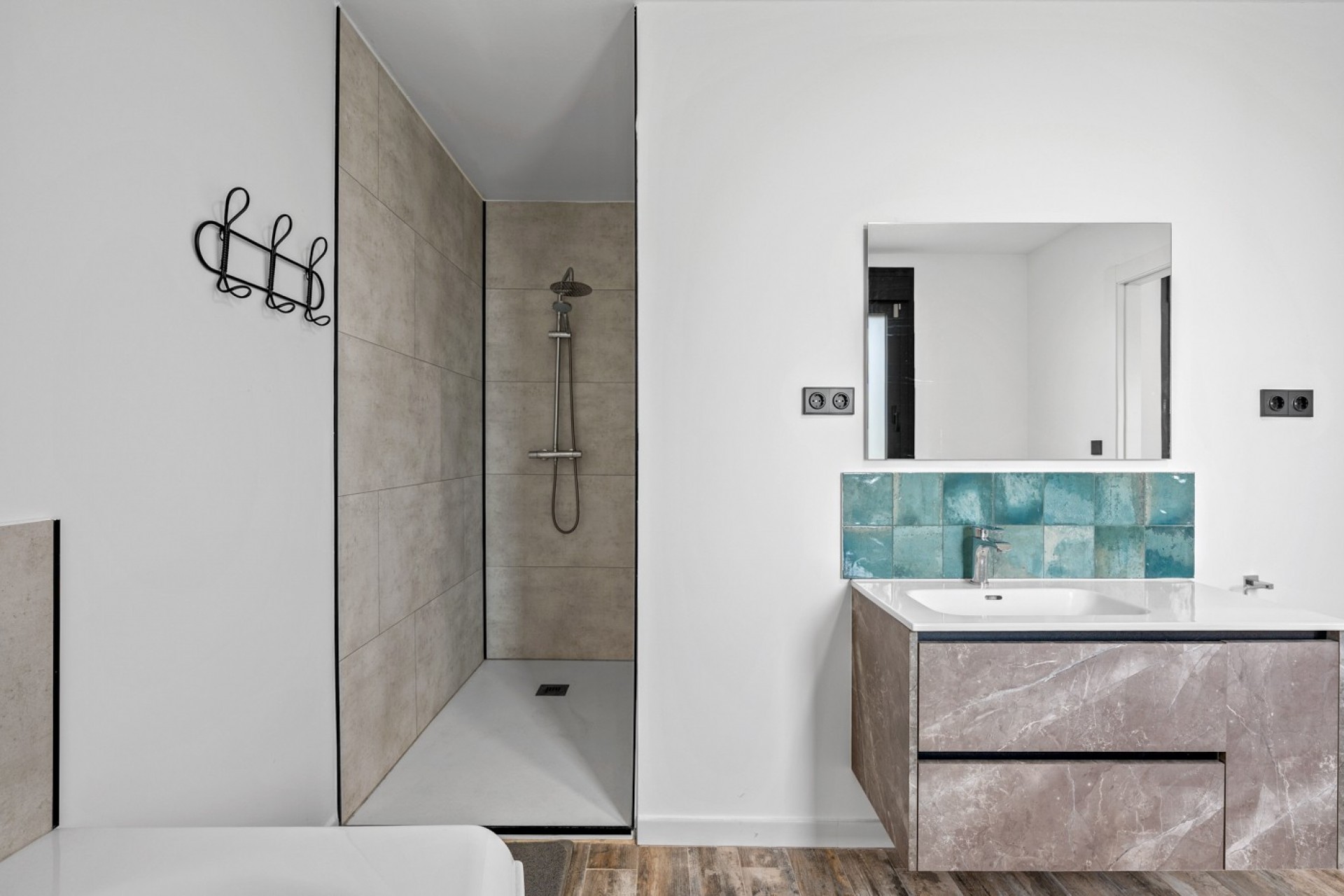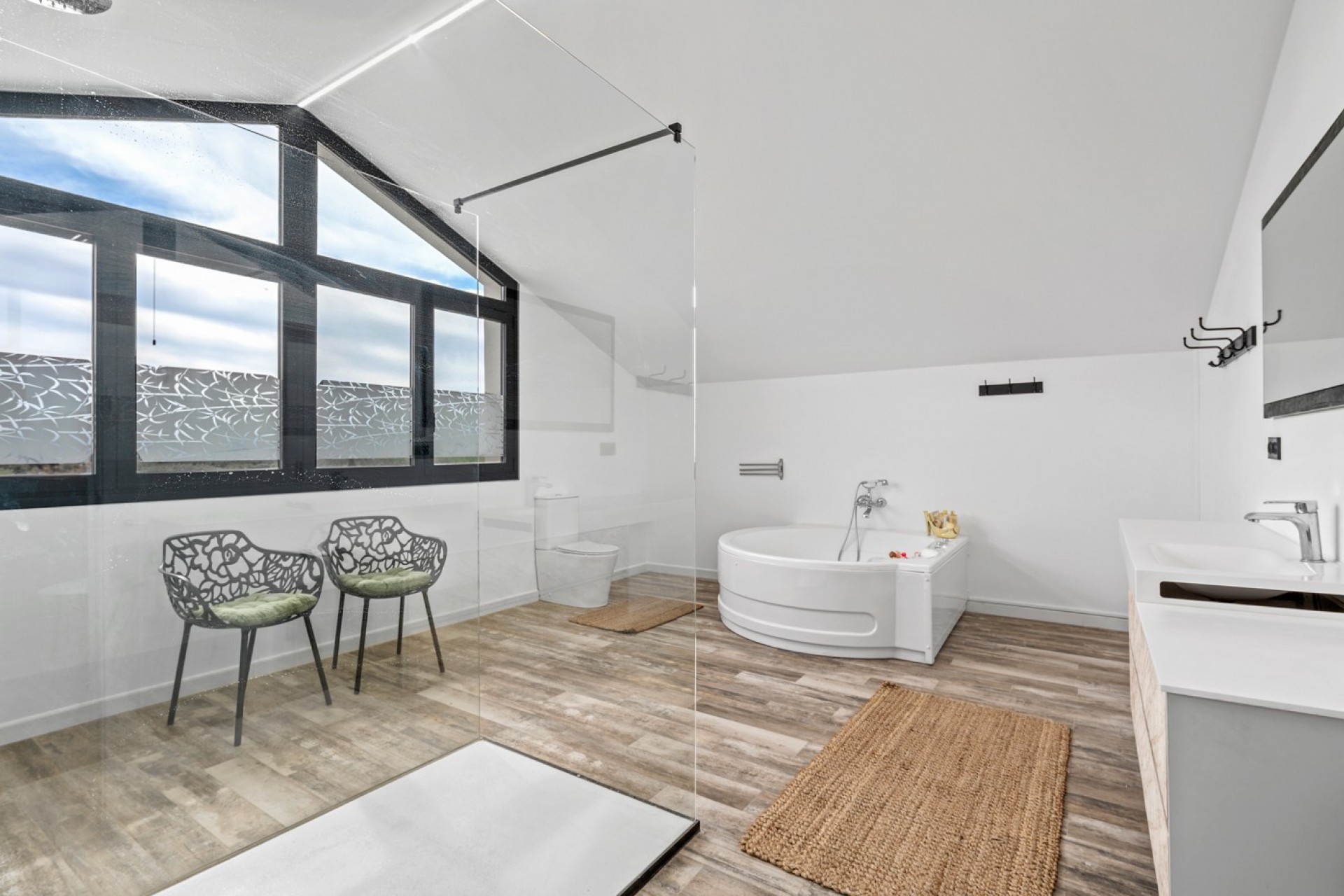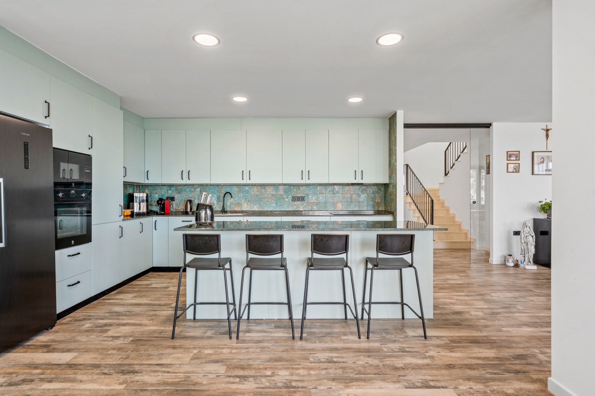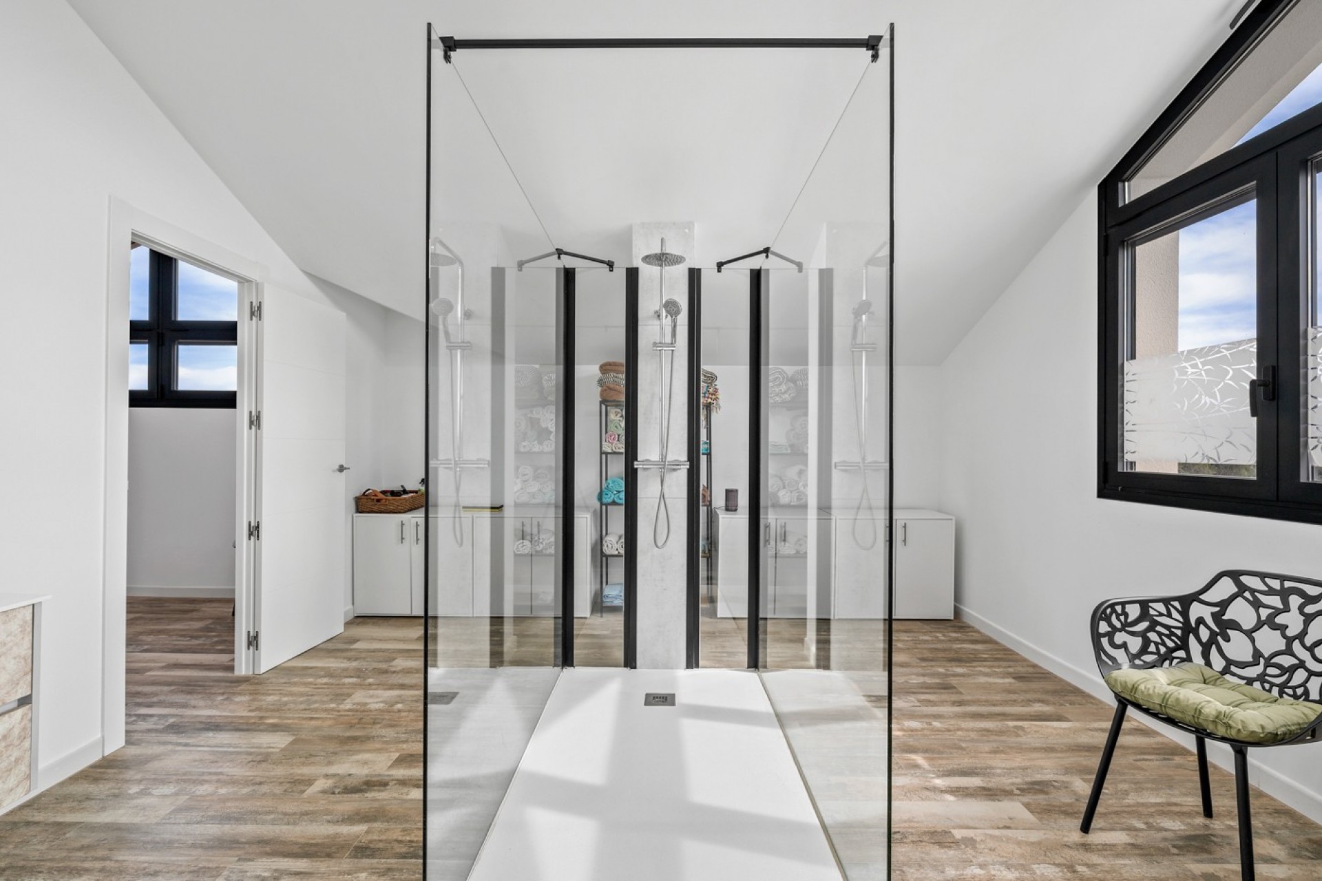 Au rez-de-chaussée, vous découvrirez un espace de vie lumineux et spacieux avec une cuisine ouverte entièrement équipée, créant un cadre convivial et fonctionnel. Ce niveau comprend également un grand débarras, trois chambres généreuses et des salles de bains modernes, conçues pour un confort optimal.