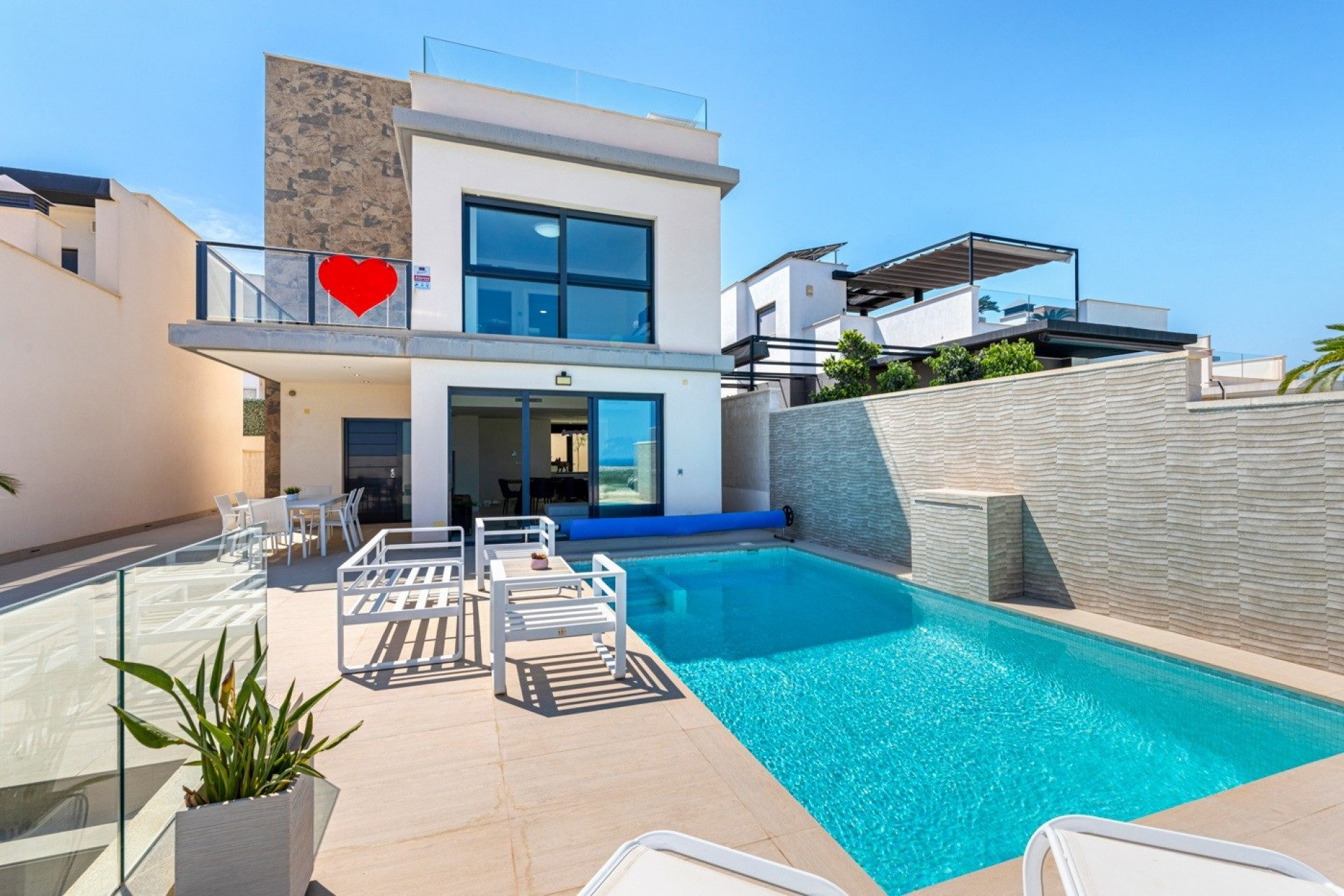 La villa est située à San Miguel de Salinas. Un endroit de choix dans un lotissement tranquille de San Miguel avec une vue imprenable sur les montagnes, la mer et le lac salé. Il s'agit d'un quartier magnifique et très recherché de la Orihuela Costa, situé à une courte distance du Las Colinas Golf & Country Resort, du terrain de golf de Campoamor et du plus grand centre commercial de la région, La Zenia Boulevard. La plage la plus proche est celle de Cabo Roig, qui se trouve à un peu moins de 15 minutes en voiture de cette propriété. Cependant, toutes les plages de l'Orihuela Costa se trouvent à une courte distance en voiture.